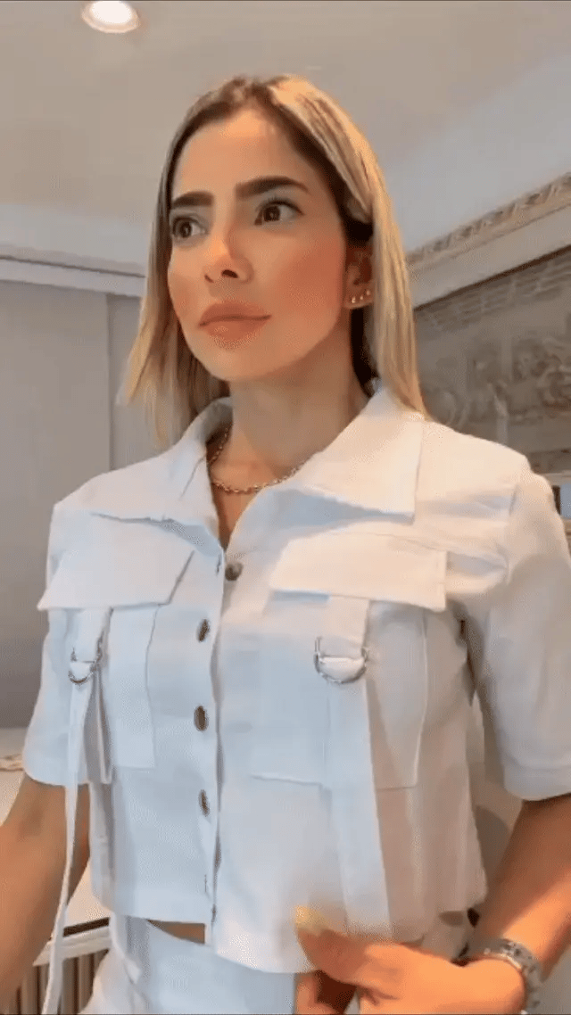 - ✔ Top crop con solapas y detalles metálicos modernos